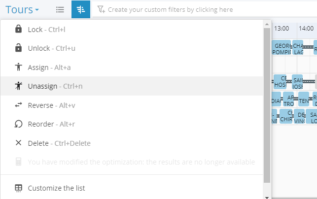 On the occasion of a future re-optimization, an unassigned visit can be reassigned automatically. (Cf. see above).