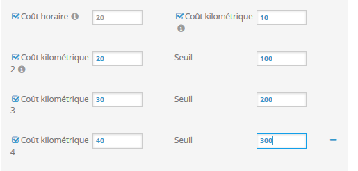 En appliquant des coûts kilométriques à partir de seuils de distances définis, vous contraindrez également le moteur à effectuer moins de distance.